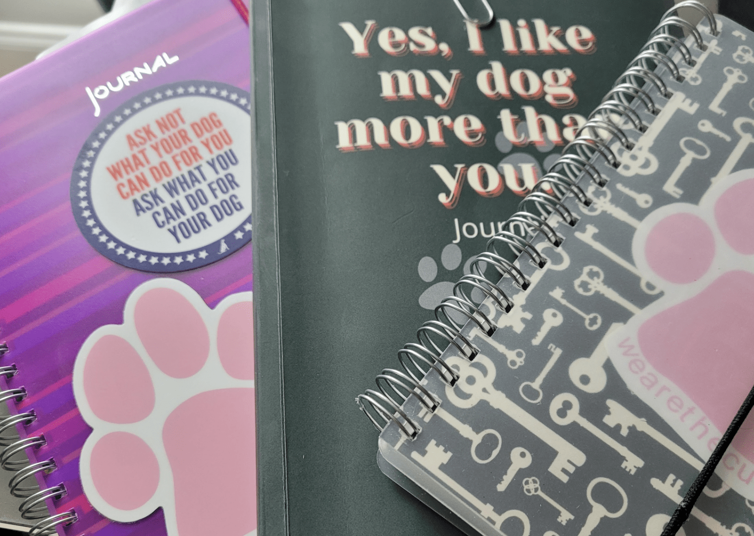 After getting the hemangiosarcoma diagnosis in December 2020, I started a health journal for Ziggy and Cookie. It’s a notebook where I keep track of the supplements they’re on, changes in diet, notes of any symptoms I observe, questions for the vets, feedback from the vets, etc.